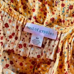 Band of Gypsies Yellow Button Front Tiered Vneck Floral Print Maxi Dress XS