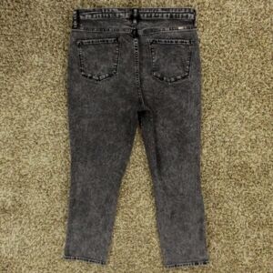 Kancan Women's Size 31 Black Straight High Rise Ankle Distressed Stretch Denim jeans offer a versatile and edgy style for everyday wear. Crafted from stretch denim, these jeans provide comfort and flexibility. The black color adds a sleek and modern touch, perfect for pairing with a variety of tops and shoes. Designed with a high rise and straight leg silhouette, they offer a flattering and contemporary fit. The distressed details add a trendy and lived-in look to these jeans. Whether you're dressing casually or for a night out, these Kancan jeans are a fashionable and comfortable choice that combines style with versatility.