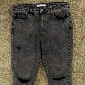 Kancan Jeans Women's 31 Black Straight High Rise Ankle Distressed Stretch Denim