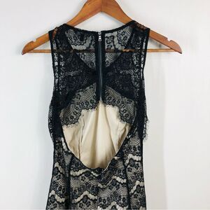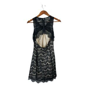 Nude lining, mini - mid length , sleeveless, open back dress with all over black lace overlay by Naked Zebra