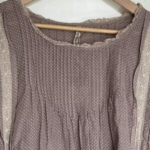 MAGNOLIA PEARL COTTON SILK ELLIE TOP PINTUCKS LACE MOP BUTTONS DOTS OS