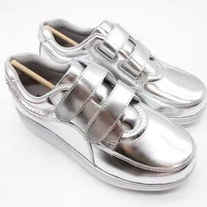 Hush Puppies Shoes Womens Silver Metallic Leather Power Walker II Size 5.5 NIB