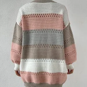Multicolor Casual Womens Color Block Drop Shoulder Open Front Cardigan