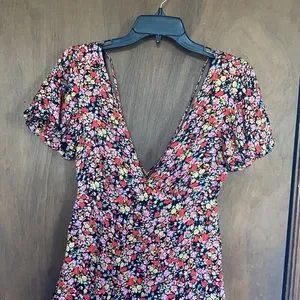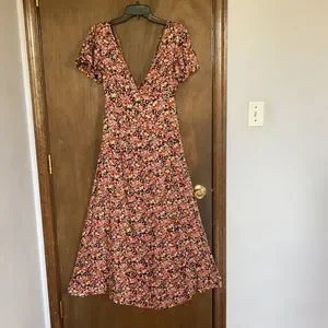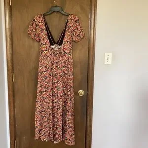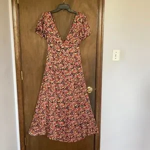 Rewind long floral print dress w criss cross in back boho XS XXL jr