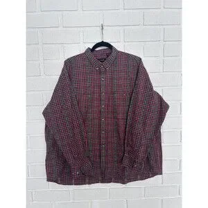 Vintage Casbah Button Up Shirt Long Sleeve Mens XL Red Green Plaid Rare