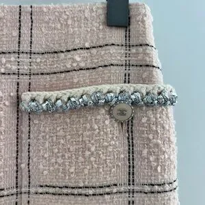 Authentic Chanel Skirt, lays just above the knee, light pink with black stitching, like new, barely worn, size 34