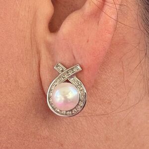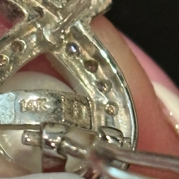14kt white Gold Lever back earrings XO with diamonds! Stunning! Pictures don’t do these justice! Happy Poshing! 🦋