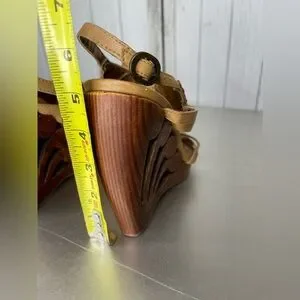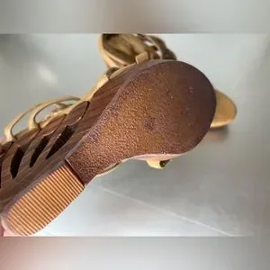 Women's Shi by Journey Wood Wedge Heels Beaded Sequin Top Sandals Size 8