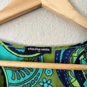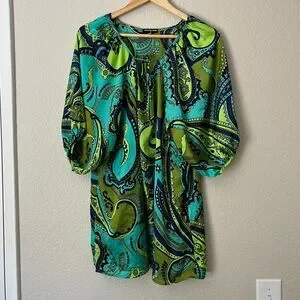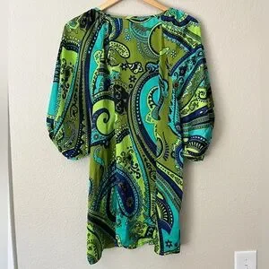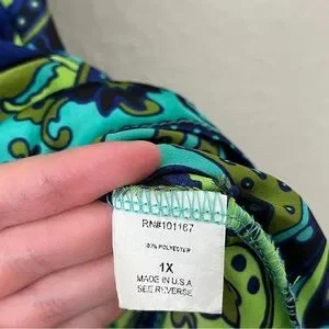 Cha Cha Vente paisley blue and green vibrant blouse with puff/balloon short sleeve tunic top women’s size 1X