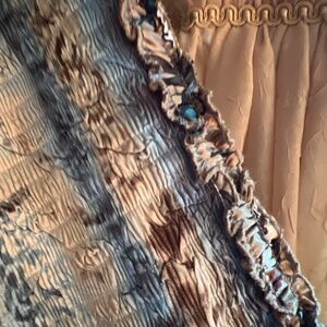 This vintage piece is full of lovely detail. The back and sleeves are one fabric and the front another. The front has appliqués, sequins and beads. The sleeves have a ruffle that runs the length of it. Very stretchy. 100% Polyester. Size M. Very good condition.