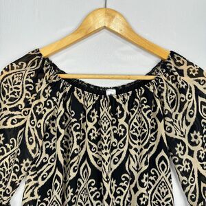 2B Together Sheer Bell Sleeve Tunic Dress Black Tan Women Size Small Long Sleeve