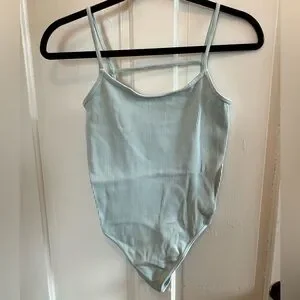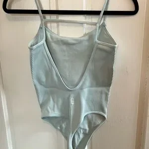 Free people ribbed active bodysuit in light blue. Size XS/S, but fits like a small. Worn once. Very soft, breathable material.