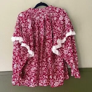 Size 40 or a M/L. It’s a little oversized for a looser look. Darling white trim. Please see all photos. 📷