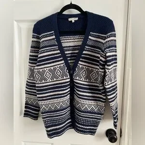 Chunky-knit, Fair-Isle-patterned cardigan in a hip-grazing, boyfriend silhouette. Excellent condition!