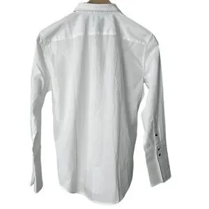A tuxedo-inspired shirt that sits somewhere between the classic and relaxed styles featuring the version of a french cuff, which was made to be worn long and unfolded for a cool, menswear-inspired look. Plus, it comes with menswear-inspired pintucks and shiny enamel buttons. It also contains organic cotton that's grown without chemical fertilizers and pesticides from nongenetically modified seeds.