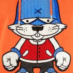Avenue George V Hoodie Orange Sweatshirt Rhinestone Bunny GV-2329 XL NWT