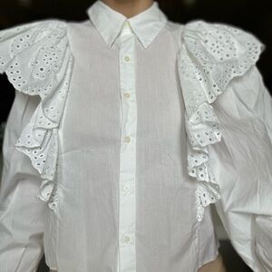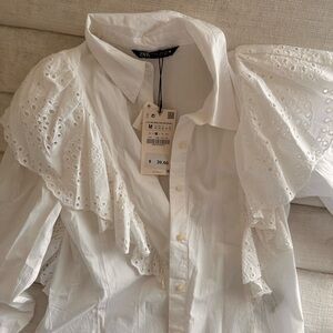 Zara shirt with puff sleeves, embroidery details and kind of crop shirt.