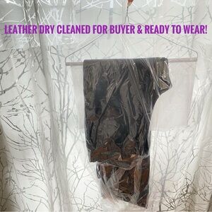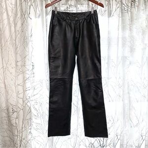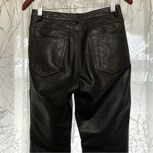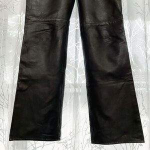 Real genuine leather black high waisted straight leg long pants with pockets