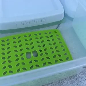 CrispTray at the bottom elevates produce away from moisture and promotes airflow to help prevent spoilage.