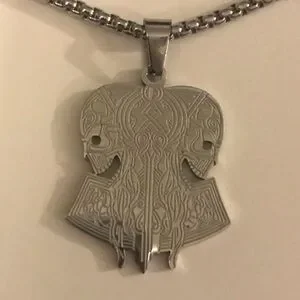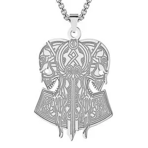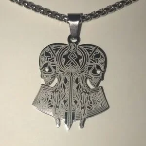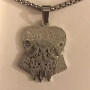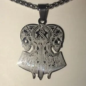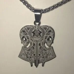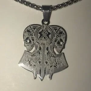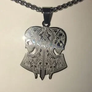 “Opposing Tribal Skulls” Native American Aztec Celtic Nordic Conjoined Necklace