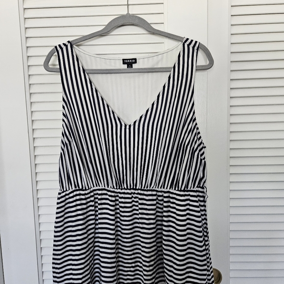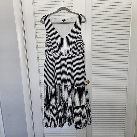 Torrid 100% Rayon Midi Blue & White Striped Tiered Sleeveless Dress size 1X.