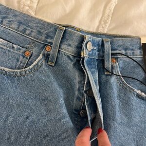 NWT Levi’s 501 denim shorts with raw hem. Size 30. High rise. Button fly. Measurements in pics.