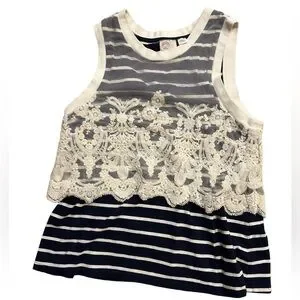 Anthropologie Stripped Tank Top with Lace Overlay Navy White