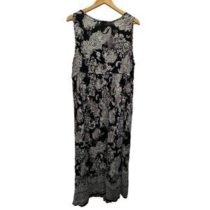 Bila Maxi Dress Womens XL Black White Paisley Crochet Long Flowy Boho Sundress