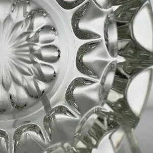 Turn the ordinary into extraordinary with this uniquely designed Retro Italian Glass Ashtray. With its 8" diameter, heavy pressed glass, and dramatic orb-like cutouts, it's more than an ashtray - it's a conversation starter.