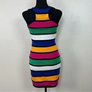 Y2K Wet Seal Striped Bodycon Dress Multicolor Women's Size S