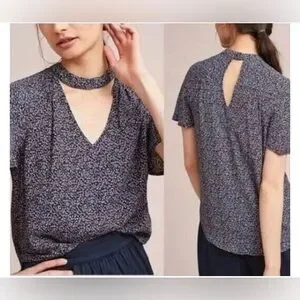 EUC Maeve Bella Blue Ditsy Dots Flutter Sleeve Choker Blouse