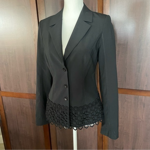 Evelin Brandt Berlin Black two button blazer with lace detail. Size 38 (US 4)