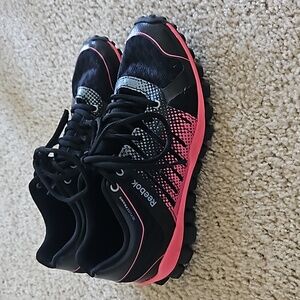 Gently used Reebok 3d Fuseframe Crosstrainer sneakers. Black and pink. Great condition. Size 7.5 womens. Built-in arch support.