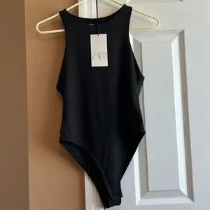 NWT, simple black crew neck style, good amount of stretch, smooth to touch.