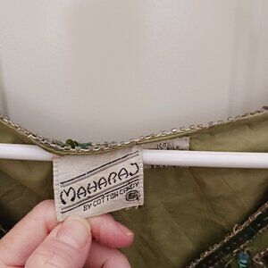 Maharaj Evening Sequin Silk Blouse V Neck Size Small Vintage Green