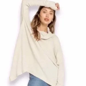 Brand new with tags Free People Juicy Long Sleeve Top. Size medium. Color is “stone cold”; ivory/cream color. Very oversized. Cowl neck can be worn up or over shoulders. Split in the back.