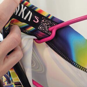 This piece is made from a high quality stretchy and breathable Lycra fabric, that feels wonderful on the skin. It’s printed with outstanding graphics that react to UV light, so you can literally glow.