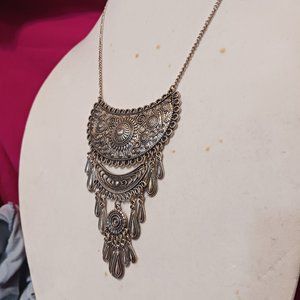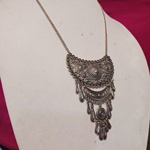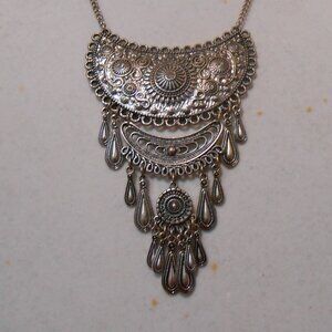 Tibetan Silver Bib-style Statement Necklace Embellished with Swarovski Crystal Rhinestones NWOT
