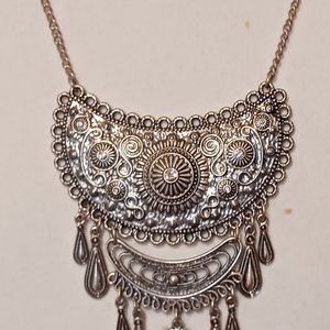 Tibetan Silver Bib Statement Necklace with Swarovski Crystal Rhinestones NWOT
