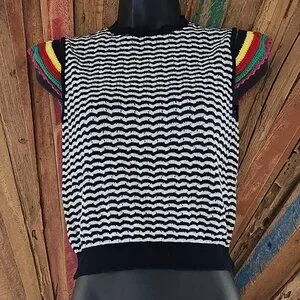 Zara striped knitted/chrochet ruffle sleeve cotton top/blouse/sweater Sz S