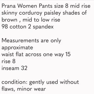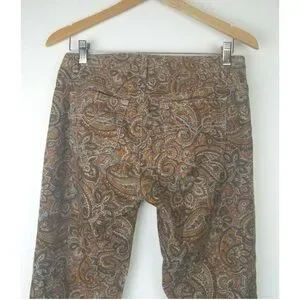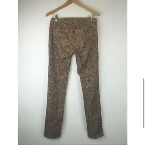 Prana Women Pants 8 Medium Skinny Corduroy Paisley Mid-Rise Brown Cotton