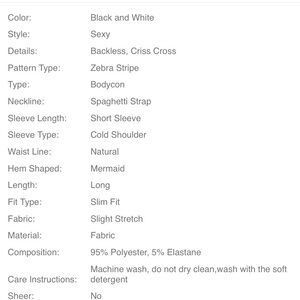 Off Shoulder Zebra Print Mermaid Dress is Long & Sexy! Black & White Zebra Print is Stylish & Unique, it hugs your curves and brings out that hour glass shape every women desires. SIZE: M & L