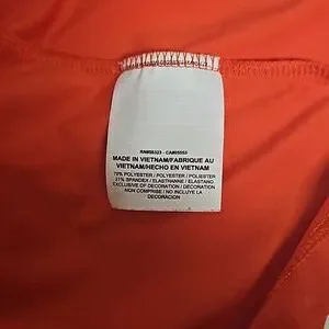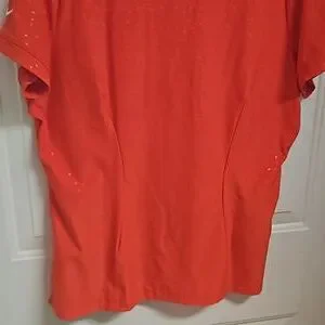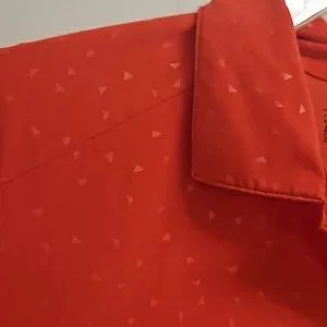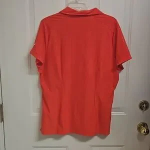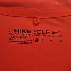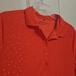 Orange Nike GOLF polovwith Dry Fit technology, subtle tone on tone triangle print, and flattering princess seams in the back for a great fit.