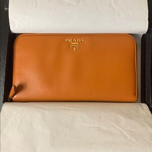 PRADA MilANO WALLET ORANGE (EUC)🧡🤎 with box/paper