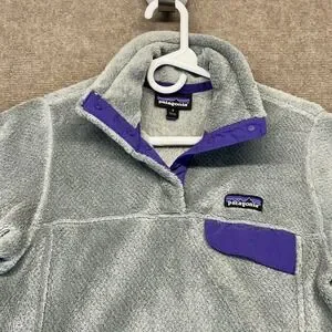 Patagonia Snap-T Fleece Pullover Women's Small Gray Purple Mock Polartec 25442