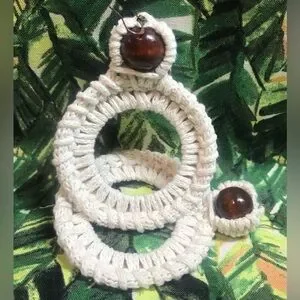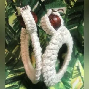 Hand crocheted hoop earrings, made with 100% cotton thread and recycled material