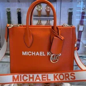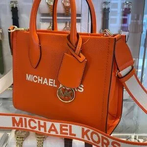MICHAEL KORS Mirella Small Pebbled Leather Crossbody Bag Tote Poppy NWT