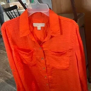 Orange Polyester Size large Button up Good condition-used No holes or flaws