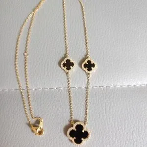 18K gold sterling silver Black Clover necklace