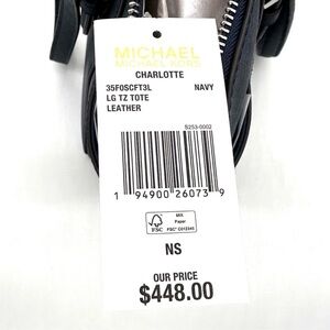 Michael Kors Large Charlotte Tote Bag & LG Double Zip Wallet Luggage Navy Blue